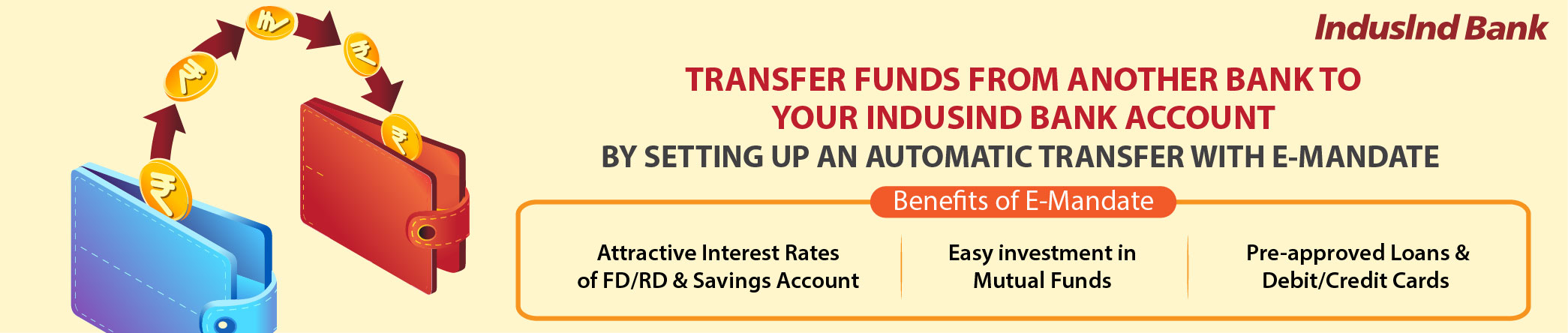 E-mandate will help you regularly maintain balance in your IndusInd Bank accounts and enjoy many benefits that come-along